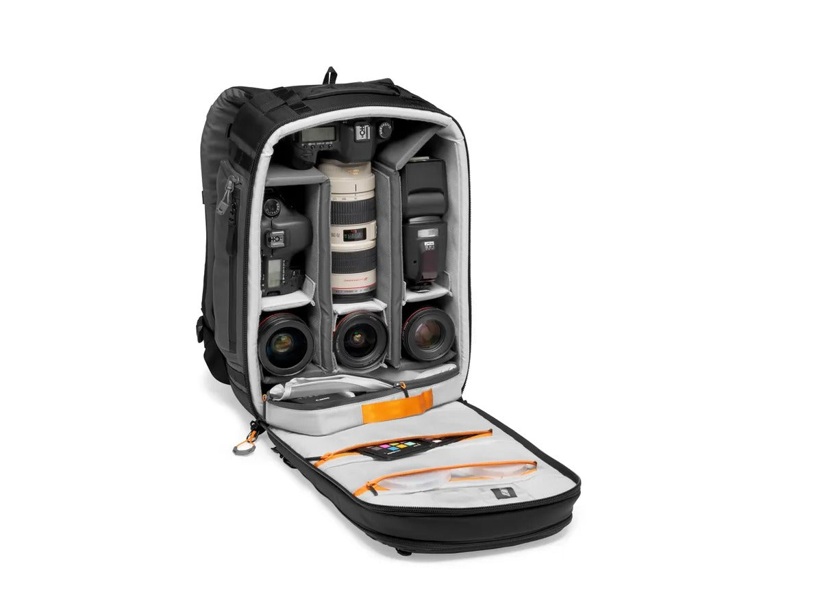 Le Lowepro Pro Trekker BP 350 AW II (GRL) est un sac à dos photo conçu pour transporter du matériel photo et vidéo complet, même en conditions rudes ou lors de longues sorties. Il accueille un boîtier reflex ou hybride — même avec un 70-200 mm monté — ainsi que plusieurs objectifs ou accessoires.
